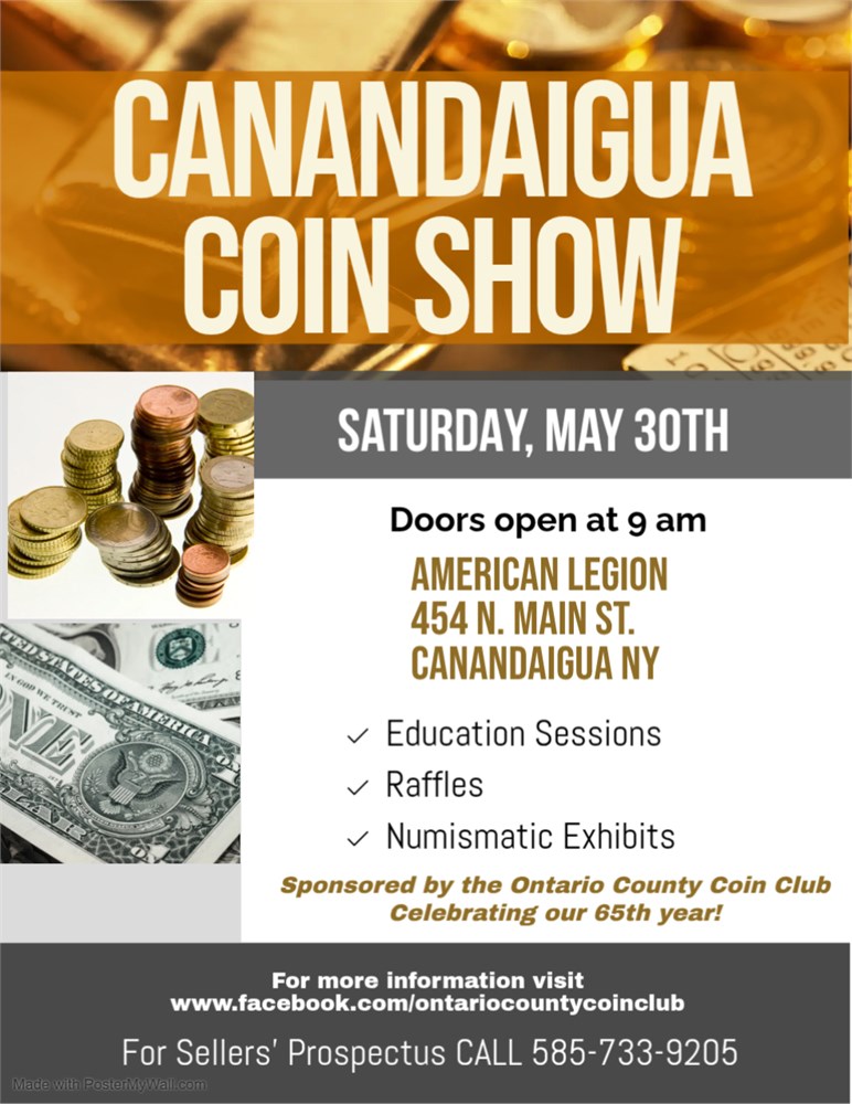 Canandaigua Coin Show May 30th, Doors open at 9 am View Watchlist >