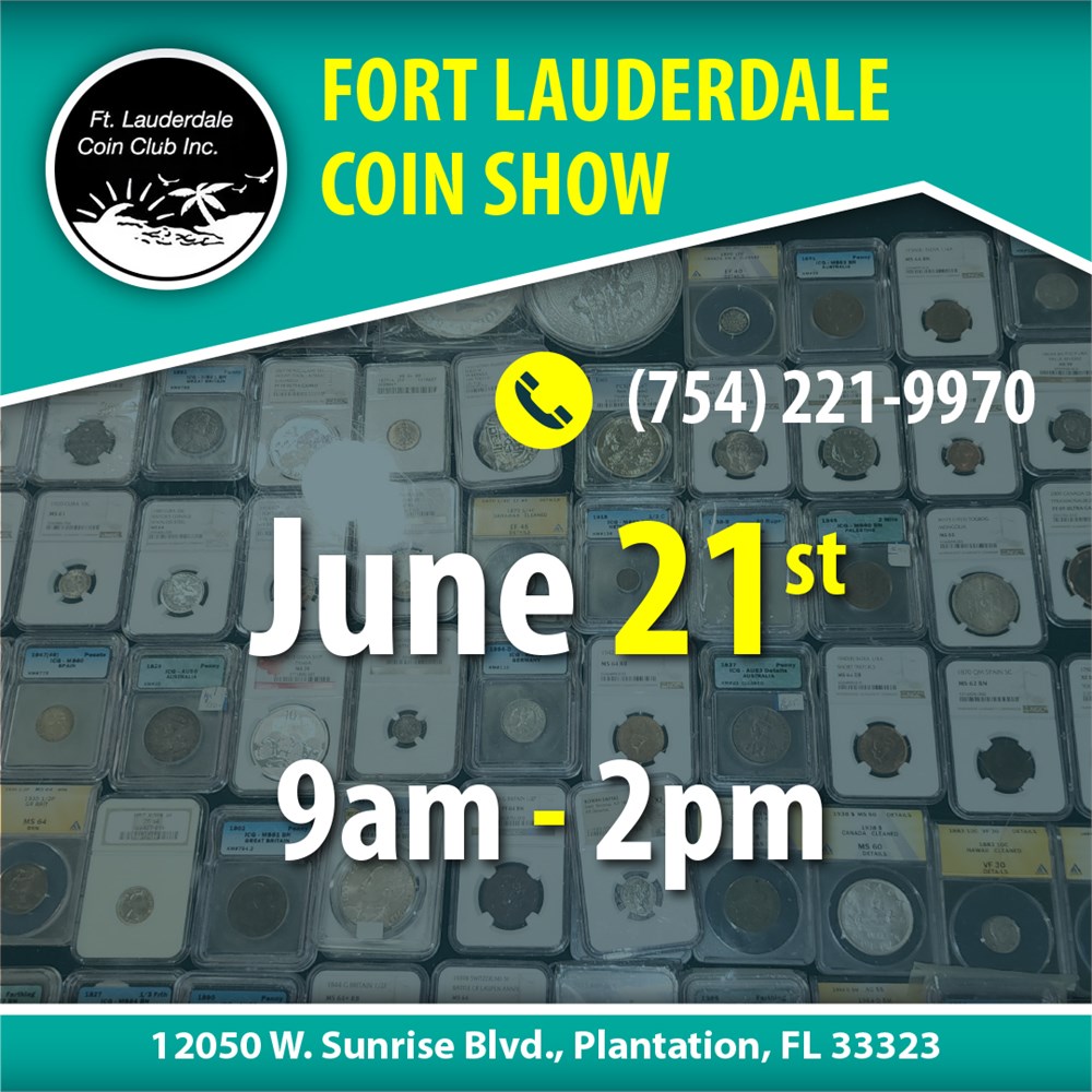 FORT LAUDERDALE COIN SHOW - Jun 21st (Sunrise, Florida) View Watchlist >